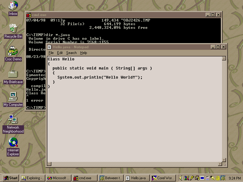 Usually you will have two windows open on your computer: one for Notepad (or other editor) and one for the command interpreter.