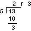 What is the remainder after dividing 13 by 5?
